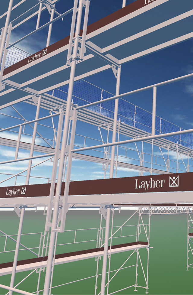 Mit den verschiedenen Software-Paketen LayPLAN CLASSIC und LayPLAN CAD können Gerüstkonstruktionen von einfachen, kleinen Fassadeneinrüstungen bis hin zu komplexen Industrierüstungen oder auch Schutz-Dächern und Tribünen geplant werden.