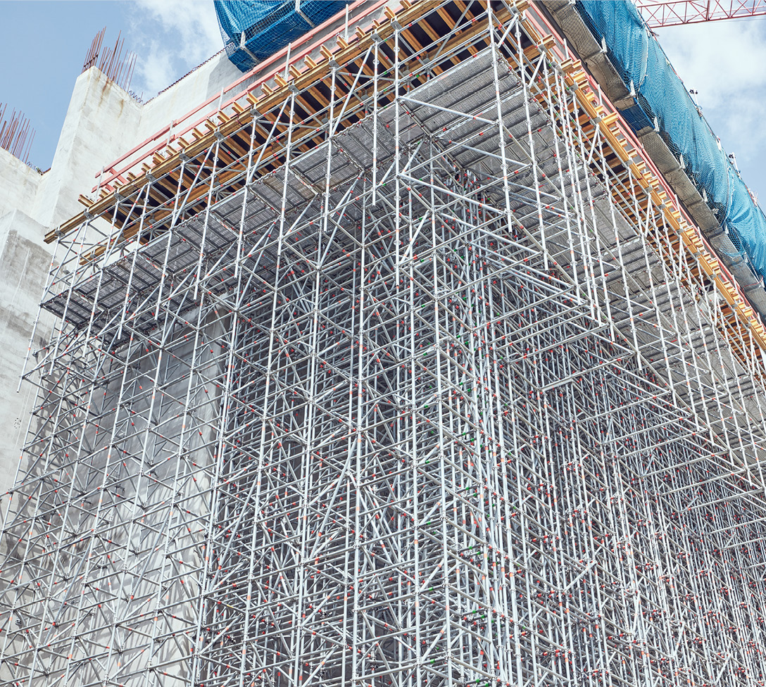 Das Allround Traggerüst TG 60 ist nicht nur äußerst tragfähig, sondern auch sicher bei Auf- und Abbau.