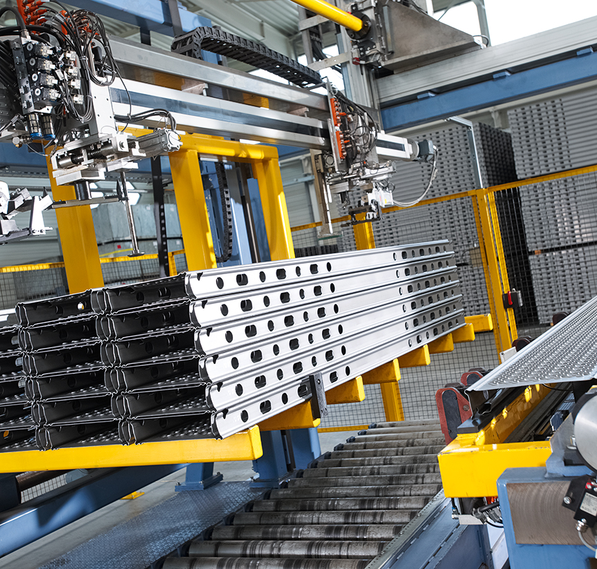 Layher investiert kontinuierlich in den Ausbau der hoch­auto­matisierten Fertigung. Mit dem Ergebnis, dass wir in Deutschland wett­bewerbs­fähig produ­zieren und die hohe Qualität unserer Produkte sicher­stellen können.