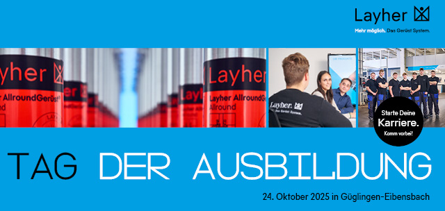 Layher steht für Lösungen, die die Arbeit im Baustellenalltag deutlich erleichtern – durch kurze Auf- und Abbauzeiten, äußerste Flexibilität und ein hohes Maß an Arbeitssicherheit. Darüber hinaus unterstützen wir Sie mit umfangreicher technischer Literatur und fachkundiger Beratung. Gerne auch direkt an Ihrer Baustelle.