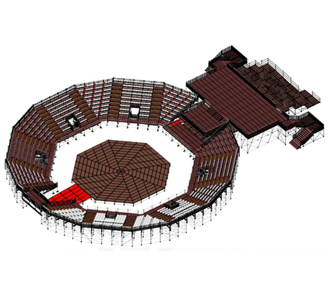 Runde Sache: Layher Event-System EV 86 als Tribüne mit integrierter Bühne und VIP-Zugang.