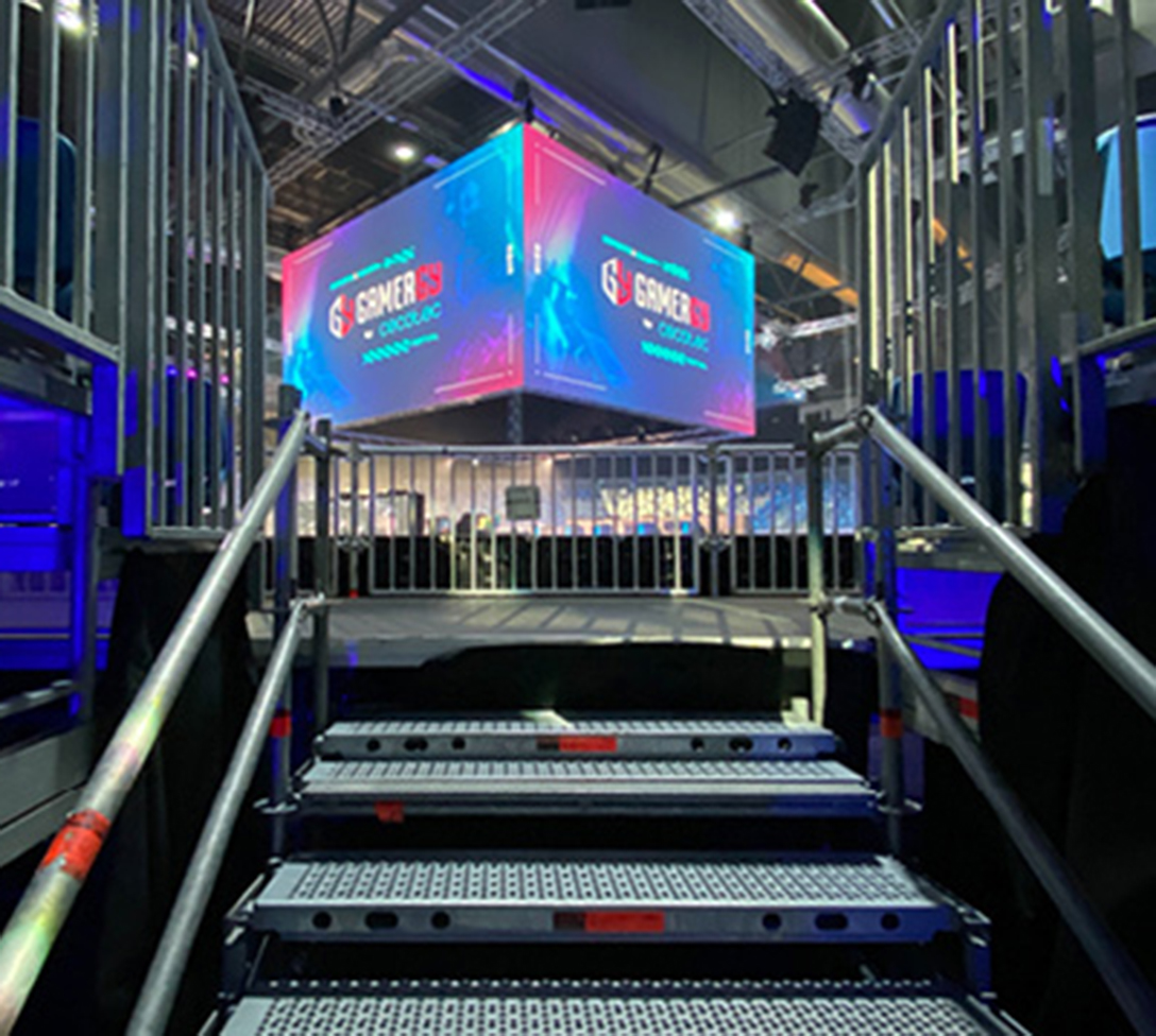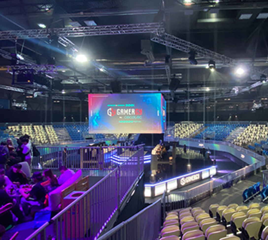 Die virtuelle mit der realen Welt im Bereich E-Sports und Gaming verbinden, das haben sich die Veranstalter von GAMERGY zum Ziel gesetzt. Für das Community-Event musste dazu auf dem Madrider Messegelände IFEMA temporär eine kreisrunde Tribünenkonstruktion mit einem Durchmesser von 46 m sowie eine Bühne im Zentrum errichtet werden – inklusive einer VIP-Zone. Mit dem Layher Event-System EV 86 und passenden Ergänzungsbauteilen wurden die Vorgaben dabei „spielend“ umgesetzt.
