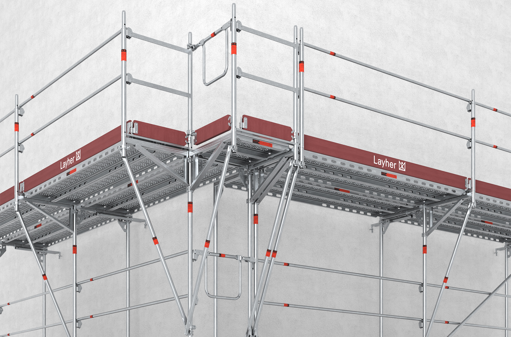 - Hohe Flexibilität durch den Einsatz in Verbindung mit der Layher Steckkonsole