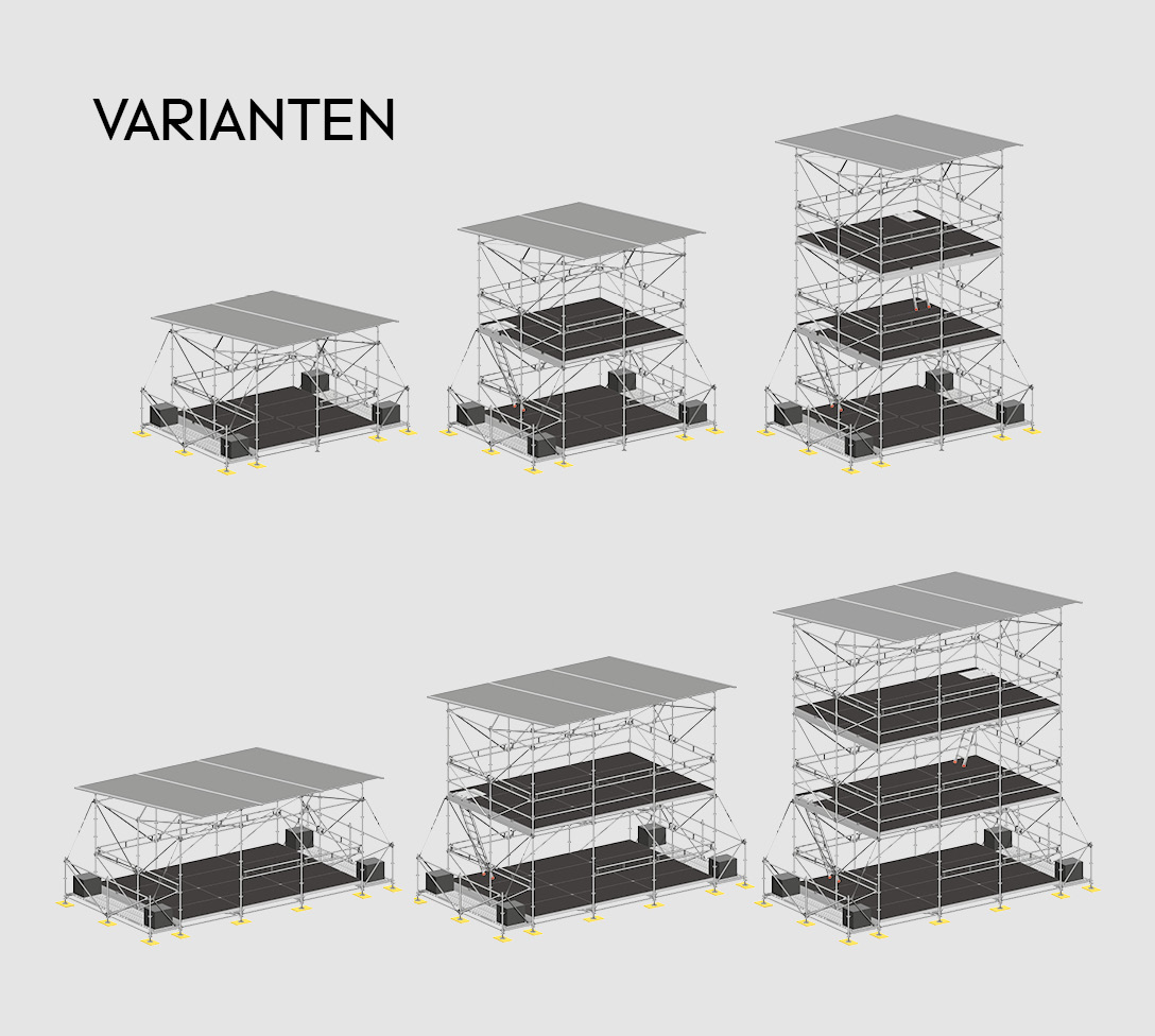 Das Layher FOH-Turm Baukastensystem bietet Ihnen die richtige Lösung für Ihre Front-Of-House-Anwendung. Um die am häufigsten vorkommenden Anforderungen erfüllen zu können, stehen insgesamt zwölf FOH-Turm Komplett-KITs zur Verfügung.