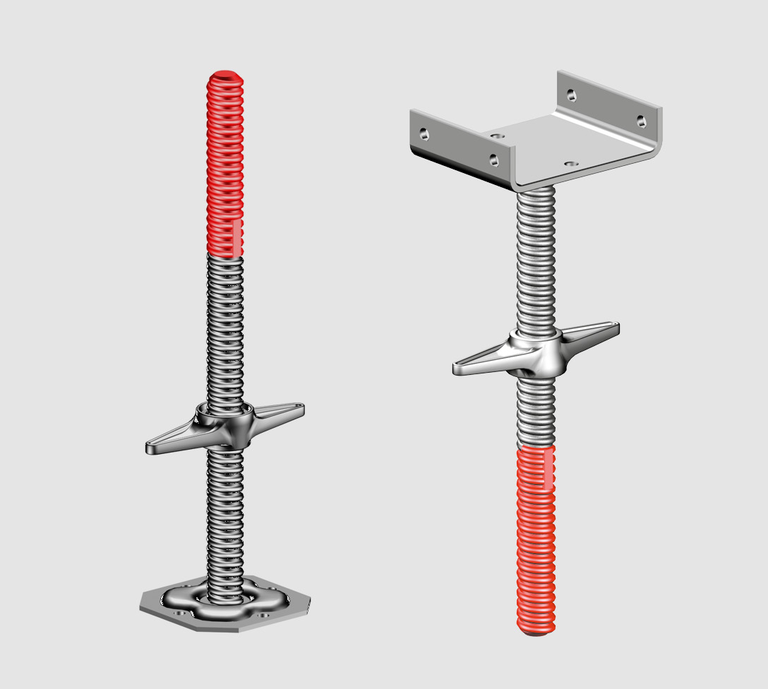 Layher bietet Ihnen ein voll­stän­diges Programm an Fuß- und Kopfspindeln inklusive Unterlage- und Ausgleichsplatten an.