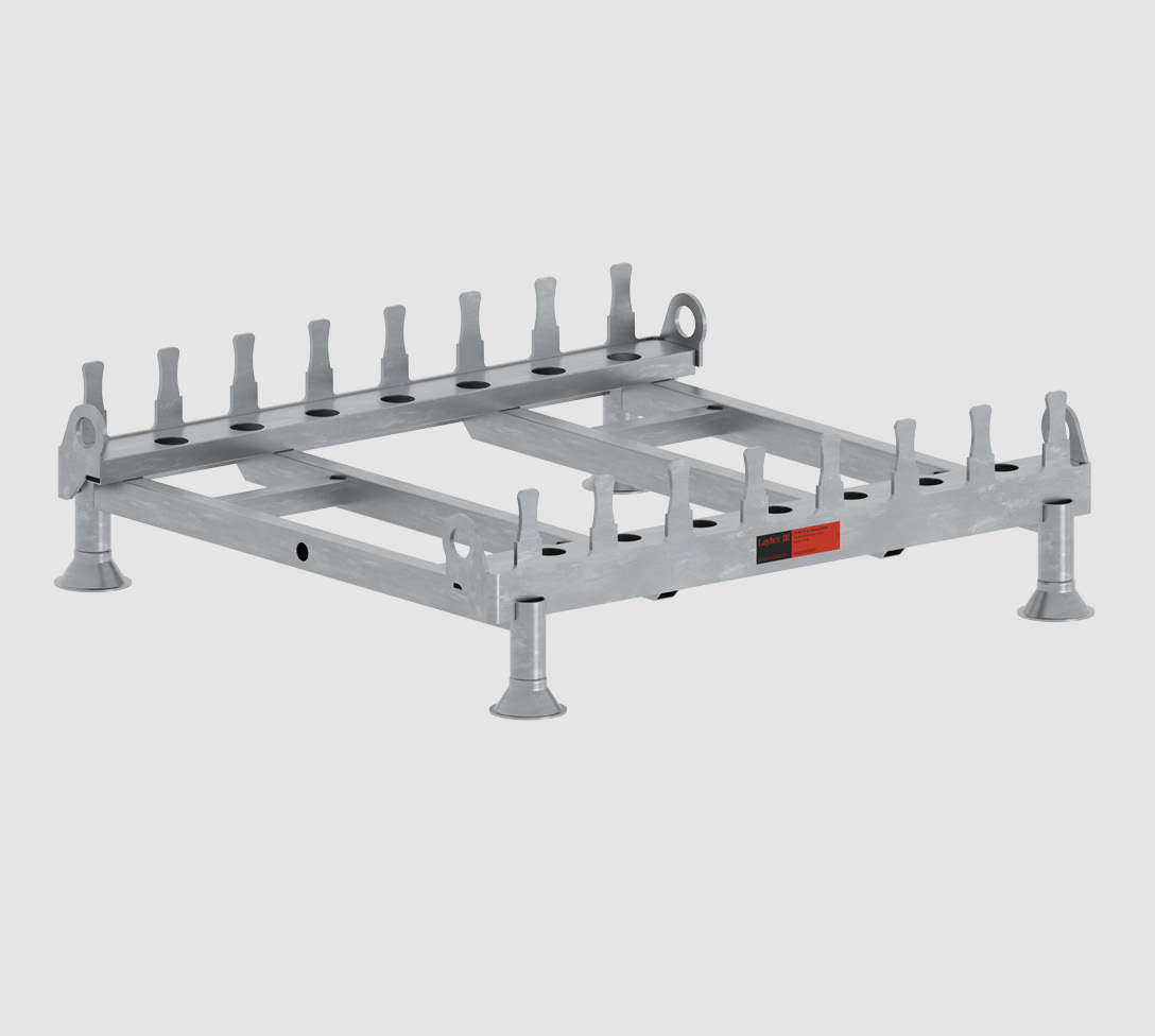 Für das Allround Traggerüst TG 60 steht zur platzsparenden Lagerung der Traggerüstrahmen eine spezielle Systempalette zur Verfügung.