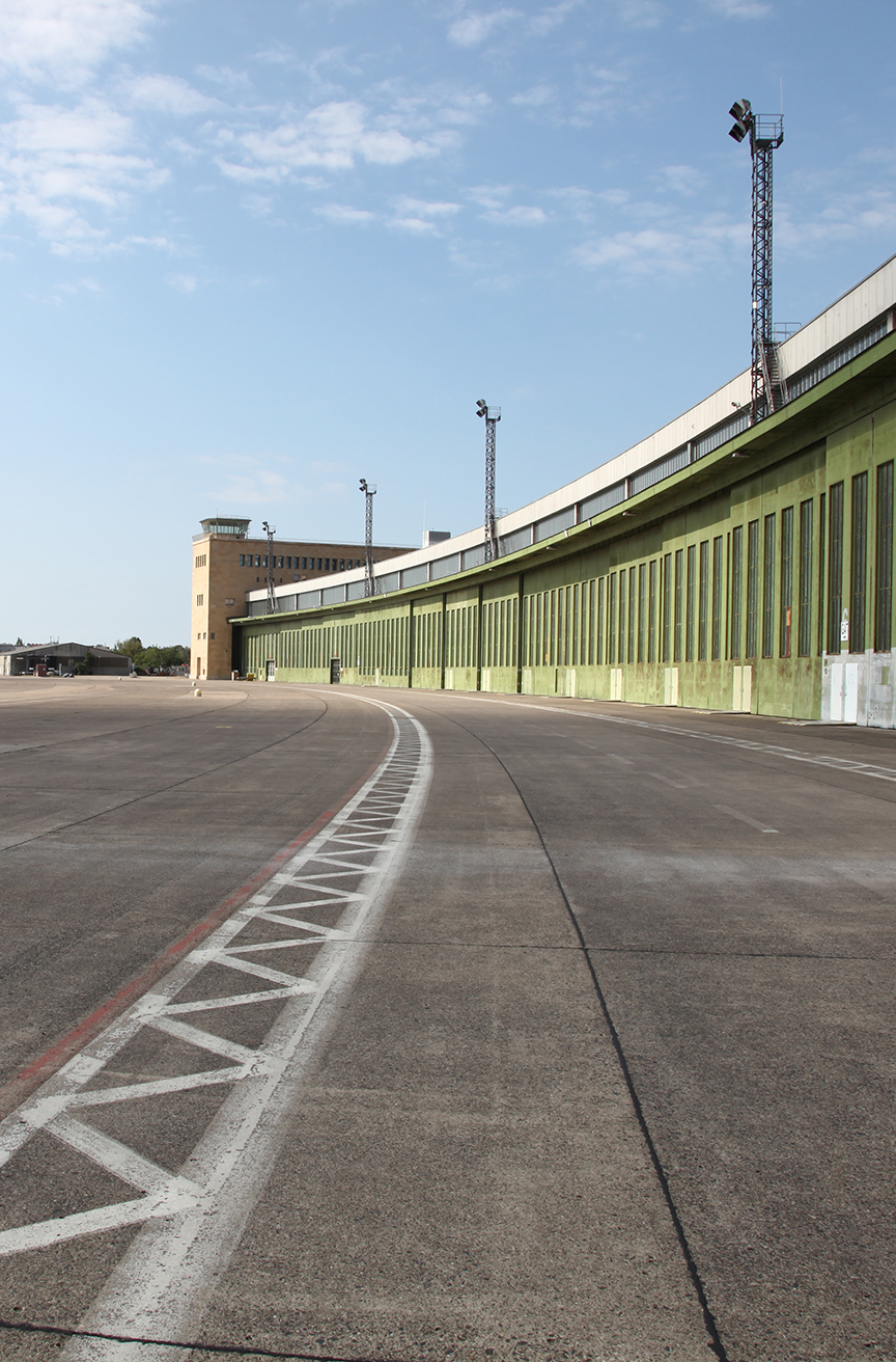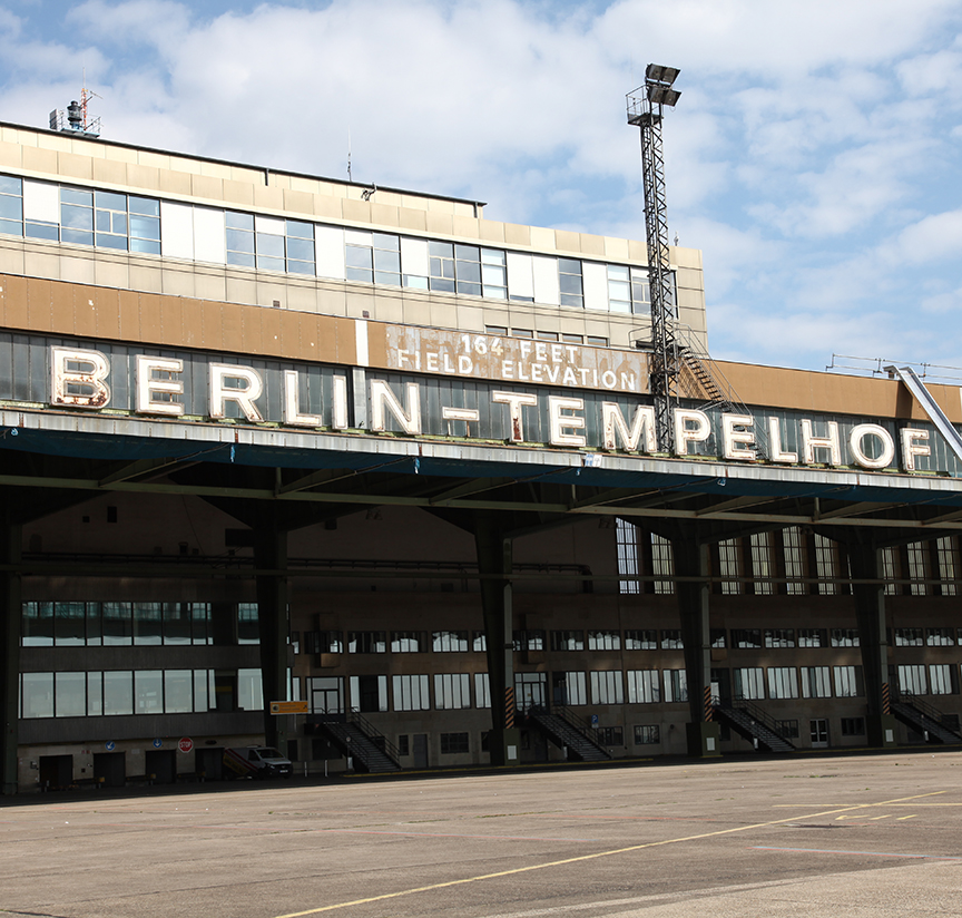 Als er 1923 in seiner damaligen Form den Linienverkehr aufnahm, war er einer der ersten Verkehrsflughäfen Deutschlands und stand mit seinem Verkehrsaufkommen noch vor Paris, Amsterdam und London. Das heutige Flughafengebäude mit seiner außergewöhnlichen Bogenform von etwa 1,2 km Länge wurde von 1936 bis 1941 erbaut und erlangte nach dem Zweiten Weltkrieg 1948 während der Blockade West-Berlins als Ziel der „Rosinenbomber“ der amerikanischen Luftbrücke weit über Berlin hinaus Bekanntheit. Heute, gut 100 Jahre nach seinem Bau, müssen die Betondecken der sieben Flugzeughangars dringend saniert werden, um das Denkmal für die Nachwelt zu erhalten. Hierfür wurden die renommierten Berliner Gerüstbauexperten der Tisch GmbH mit Geschäftsführer Nick Haseloff beauftragt, die mithilfe der Allround Fachwerkträger von Layher die notwendigen Arbeitsplattformen 18 m freitragend zwischen den Hallensäulen platzierten.