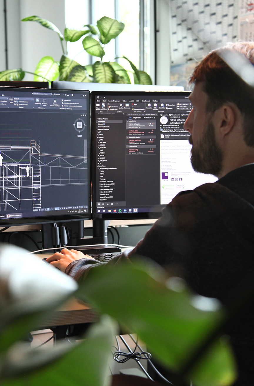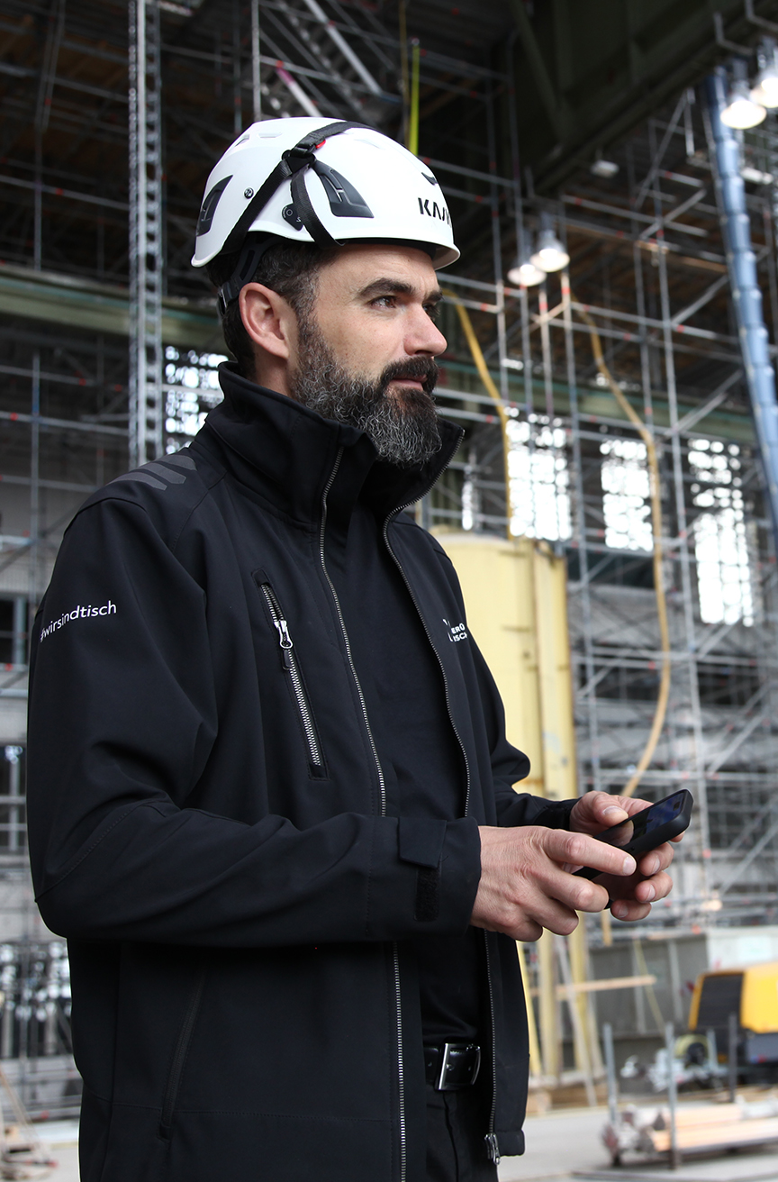„Als Gerüstbauer in Berlin musst du schon aus der Tradition einer eingeschlossenen Stadt ein umfassendes Leistungsportfolio anbieten können. Daher bauen wir auch hier am Flughafen nicht nur die Gerüste, sondern auch die kompletten Arbeitsplattformen für die Sandstrahler und Betonarbeiter. Unsere Leute sind, was das angeht, echte Allrounder, die bauen einfach alles, was gebraucht wird“, so der Geschäftsführer. Das Unternehmen hat dementsprechend sowohl einen eigenen Holz- als auch Stahlbau und kann damit Projekte wie z. B. das am Flughafen Tempelhof ganzheitlich anbieten und muss keine weiteren Dienstleister einbinden. Die notwendige Statik für diese anspruchsvollen Projekte erstellen die Berliner in enger Zusammenarbeit mit einem spezialisierten Statikbüro und dem Technischen Büro von Layher in Eibensbach.