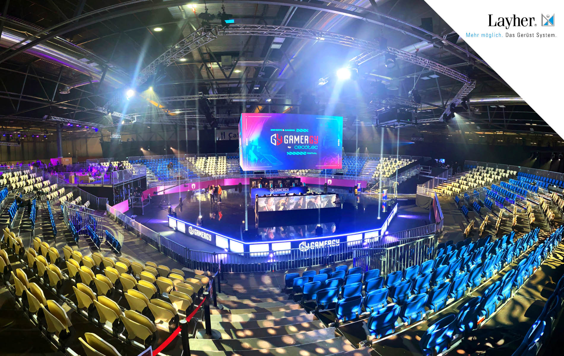 Als der Flughafen Berlin-Tempelhof 1923 den Linienverkehr aufnahm, war er einer der ersten Verkehrsflughäfen Deutschlands und stand mit seinem Verkehrsaufkommen noch vor Paris, Amsterdam und London. Seit 2008 ist er jedoch „Geschichte“. Um das Flughafengebäude mit seiner außergewöhnlichen Bogenform zu erhalten, müssen die Betondecken der sieben Flugzeughangars dringend saniert werden. Mit Arbeitsplattformen, die 18 m freitragend zwischen den Hallensäulen platziert und an den Dachbindern abgehängt wurden, schuf Tisch Gerüstbau wirtschaftlich die Voraussetzungen. Die Planung? Digital in 3D mit LayPLAN CAD. Die Lösung? Das AllroundGerüst in Verbindung mit dem Ergänzungsbauteil Allround Fachwerkträger.