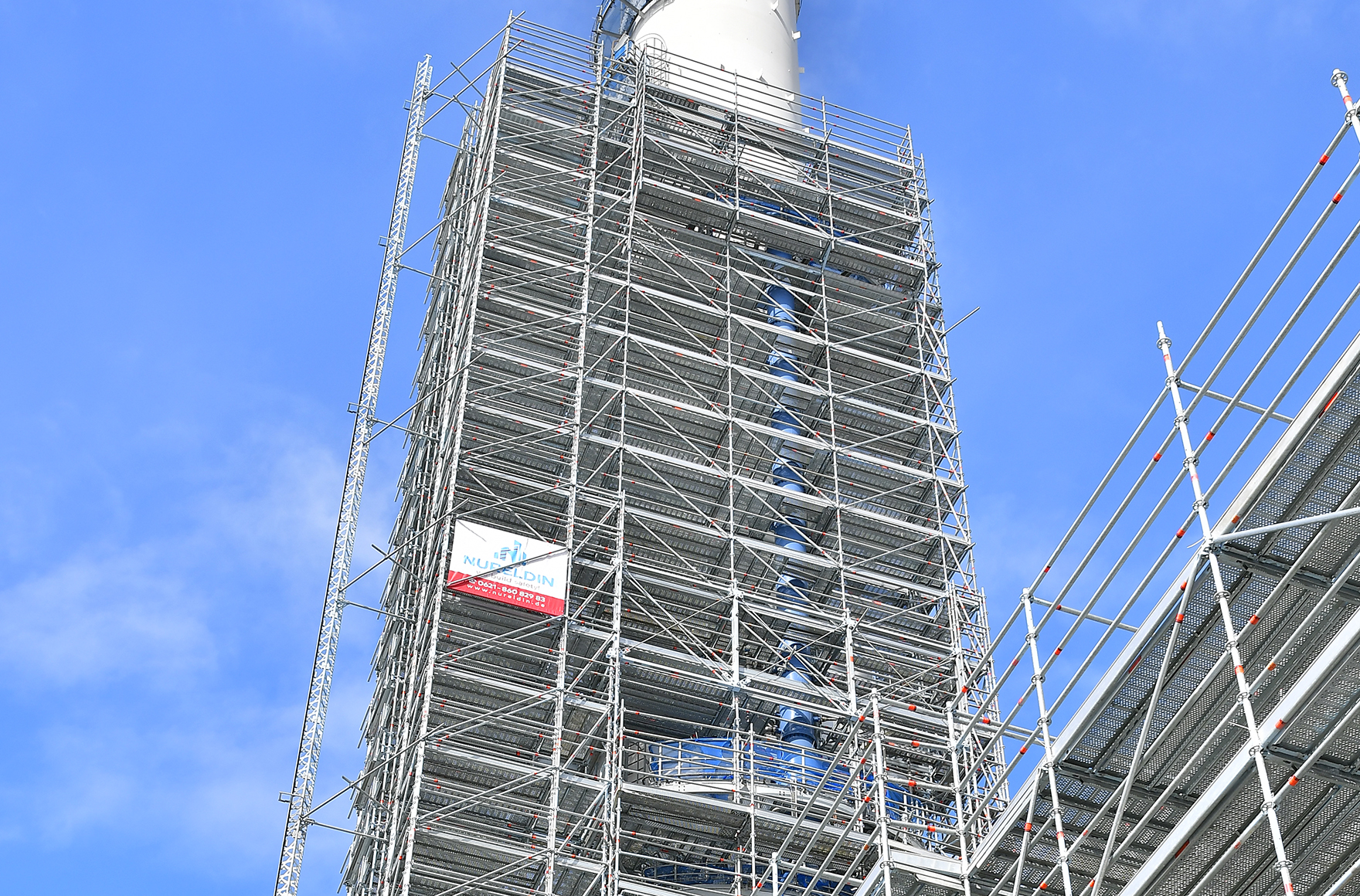 Die Themen Effizienz und Sicherheit haben in der Prozessindustrie eine hohe Bedeutung – auch beim Erstellen von Gerüst- und Höhenzugängen. Aktuelles Beispiel: die Einrüstung einer Kolonne für Wartungs- und Instandsetzungsarbeiten. Beim rund 50 m hohen Arbeitsgerüst mussten nicht nur neue Anlagenbauteile wie Pumpen, Saug- und Druckleitungen, die zugehörigen Stahlbauarbeiten sowie die Isolierarbeiten an den Rohrleitungen in der Planung berücksichtigt werden. Ziel war auch, die kostenintensiven Stillstandszeiten zu reduzieren – ohne auf Sicherheit zu verzichten. Die Vorplanung in 3D, der Einsatz des AllroundGerüsts sowie Montage und Demontage durch das spezialisierte Gerüstbauunternehmen Nureldin waren hierbei die entscheidenden Erfolgsfaktoren.