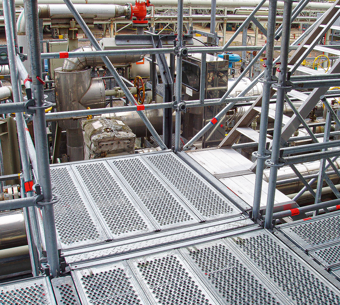 Im täglichen Wartungsbetrieb werden zudem schwere Komponenten wie Armaturen, Pumpen oder Rohrleitungssegmente temporär auf Gerüstkonstruktionen abgesetzt. Entsprechend sind geprüfte Tragfähigkeit, sichere Lastabtragung und präzise Planung entscheidend für Sicherheit und effiziente Abläufe.