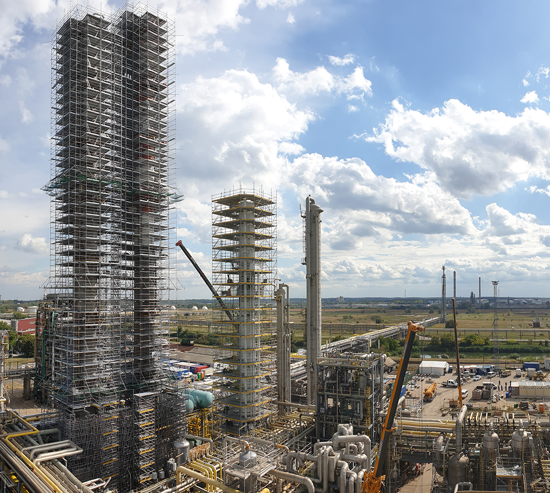 Mit dem Gerüstsystem von Layher entstehen flexible und sichere Behälterinnenrüstungen für Kolonnen, Tanks und Reaktoren. Die Konstruktionen passen sich komplexen Geometrien optimal an und schaffen durchgängige Arbeitsebenen. Die leichten, handlichen Einzelteile können problemlos durch Mannlöcher eingebracht werden – ideal für Revisionen und Shutdowns. Das sorgt für schnelle Montage, hohe Tragfähigkeit und effiziente Arbeitsabläufe.