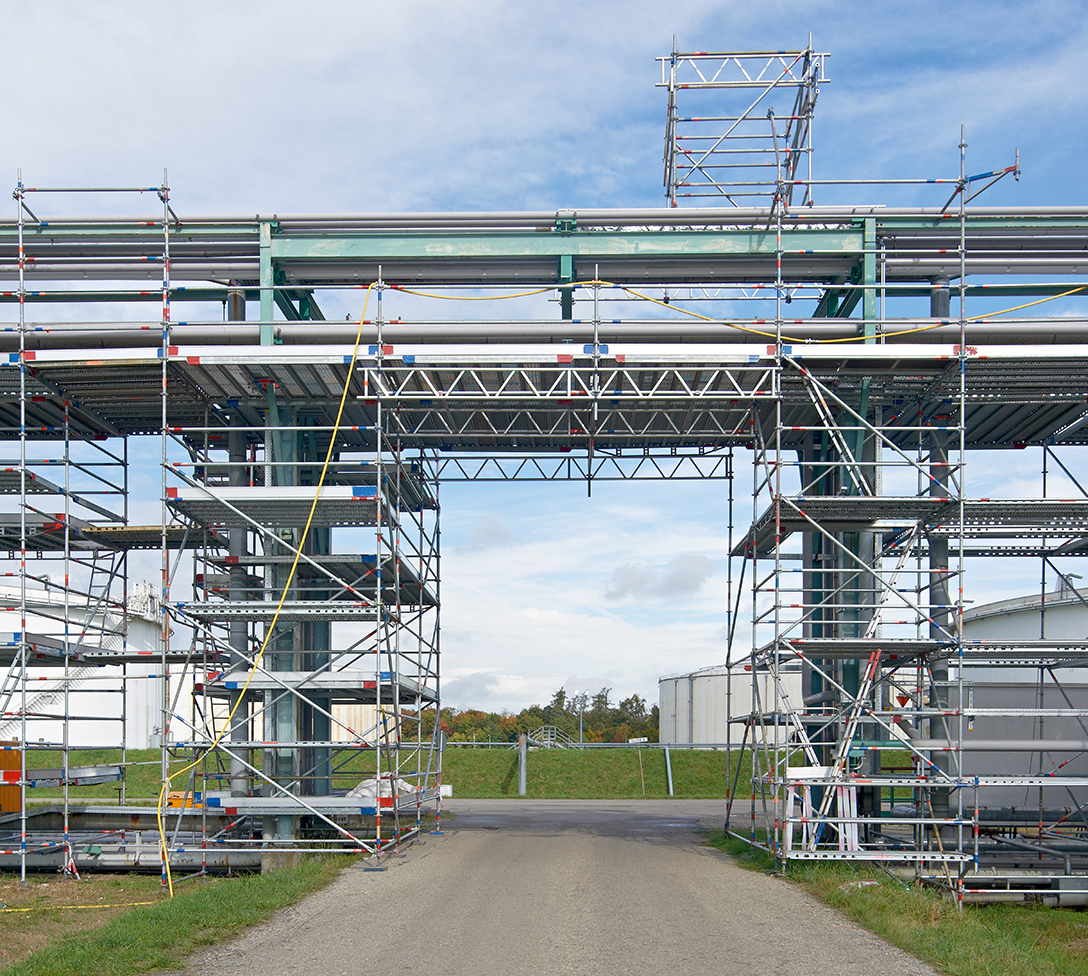 Weil keine Anlage der anderen gleicht, müssen Gerüstsysteme flexibel anpassbar sein. Die Lösung: Gerüstsysteme von Layher.