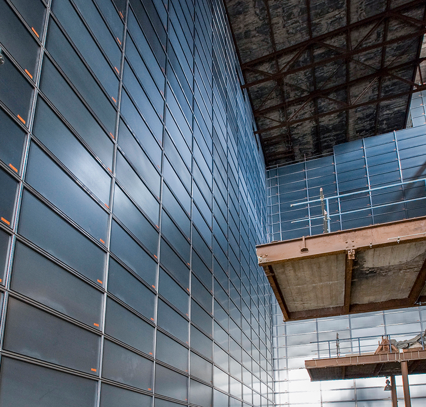 Das umfangreiche Layher Programm an Schutz-Systemen reicht von kompakten Wetterschutzdächern bis hin zu weitgespannten Dachlösungen und unterdruckfähigen Einhausungssystemen.
