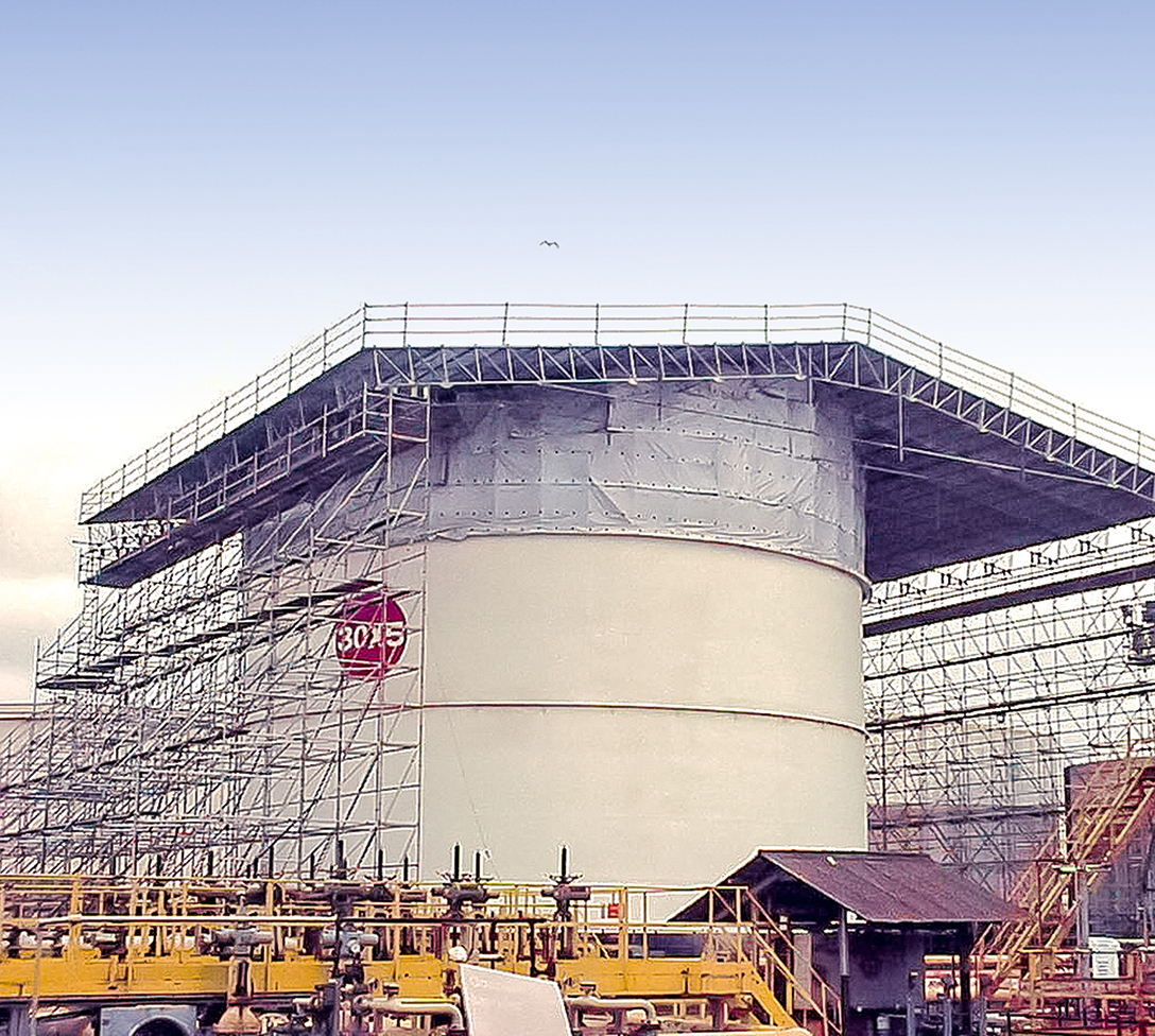 Rundrüstungen für Wartungs- und Inspektionsarbeiten an großen Lagertanks, die z.B. in Raffinerien oder bei der Lagerung von Rohöl oder Gas verwendet werden.