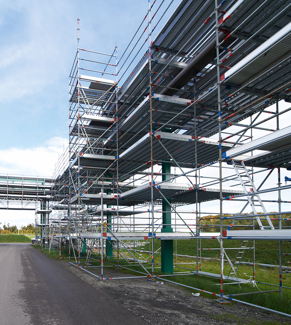 Für baustellenspezifische Sonderfälle bietet Layher ein umfassendes Portfolio an Ausbauteilen an, um durchgehend geschlossene Arbeitsflächen im System zu erreichen.