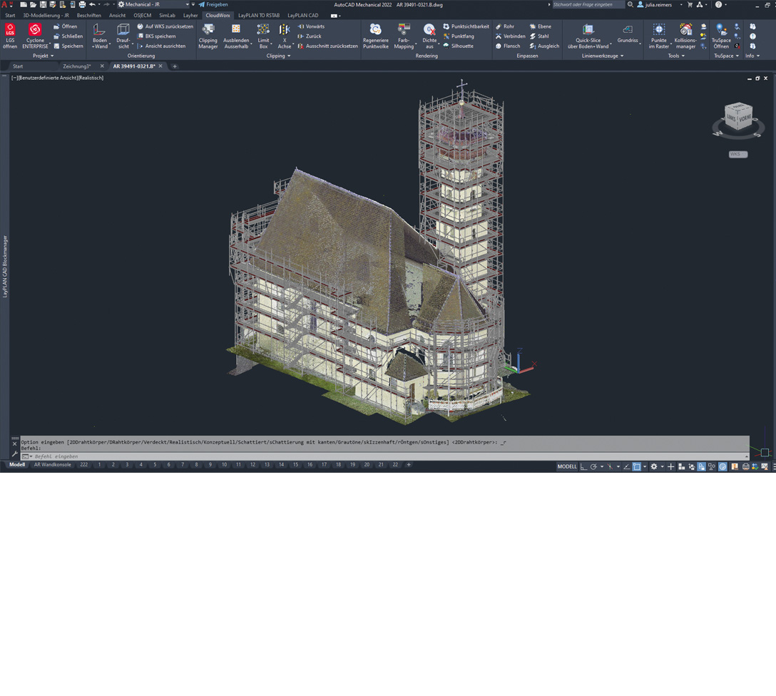 - Zur optimalen Nutzung der Daten des 3D-Laserscanners in LayPLAN CAD empfehlen wir das Plug-In Cloudworx für AutoCAD von Leica
