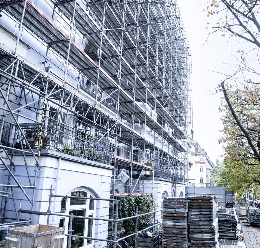 Neben Hafen und Elbphilharmonie hält Hamburg für seine Besucher viele Highlights und auch die eine oder andere Kuriosität bereit. Ob man die Sierichstraße im Stadtteil Winterhude dazu zählt, ist wohl Geschmackssache. Sie ist eine der wenigen Straßen in Europa, die ihre Fahrtrichtung im Laufe des Tages ändert, um den Pendlerströmen gerecht zu werden. Dürfen die Autos auf ihr vormittags zweispurig in die Stadt hineinfahren, so ist sie ab nachmittags in die andere Richtung vorgesehen. Die Straße ist gesäumt von historischen Villen und großen Mietshäusern. Einer dieser stattlichen Häuserblöcke soll für moderne Loftwohnungen um 1,5 Stockwerke aufgestockt werden, was beim Hamburger Wetter nur mit einem Wetterschutzdach machbar ist. Die Hamburger Busch Gerüstbau GmbH & Co. KG wurde mit der Planung und Realisierung des dafür notwendigen Fassadengerüsts und der 2.000 m2 Kederdachlösung XL betraut.