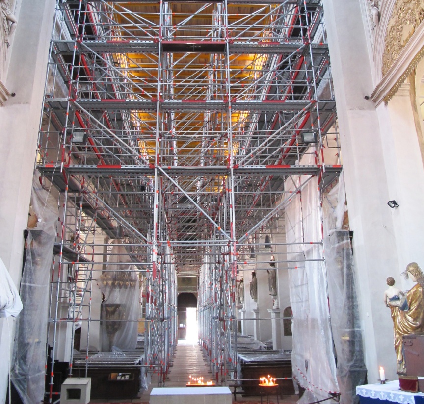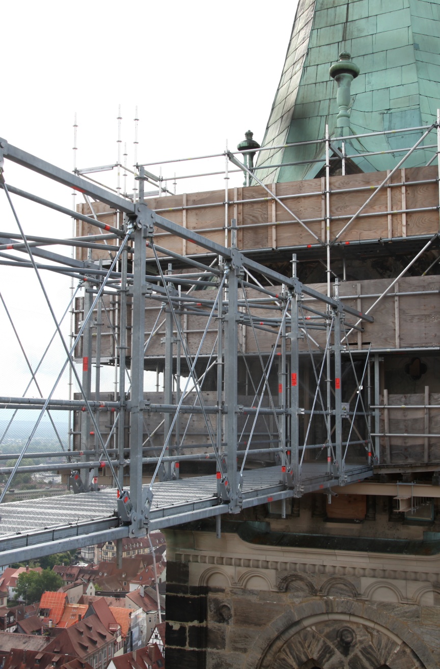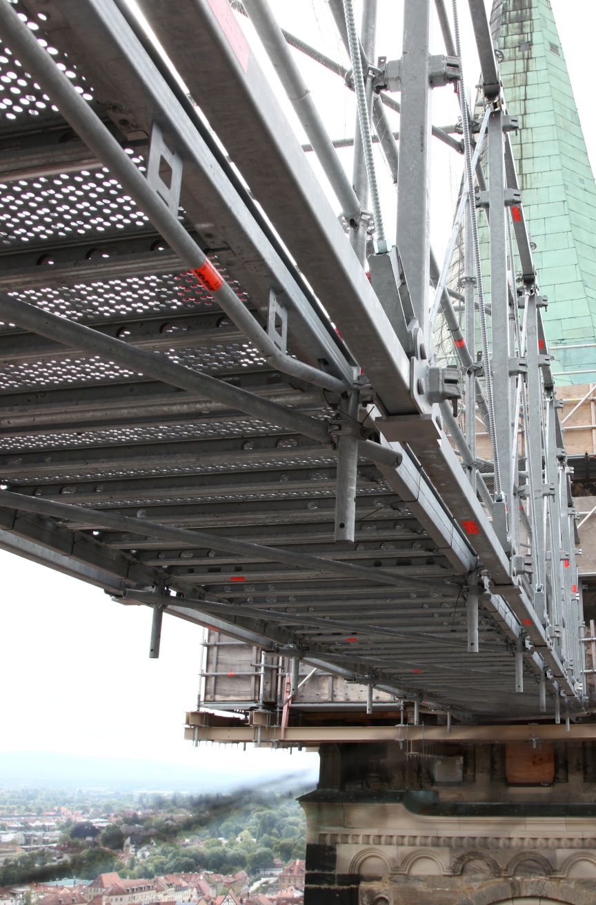 „Wir sind unter anderem nicht zuletzt wegen der besonderen historischen Kulisse hier in Bamberg auf Gerüstlösungen für den Denkmalschutz und die Sanierung historischer Gebäude und Kirchen spezialisiert“, so Udo und Thorsten Karl, Geschäftsführer des Unternehmens mit Hauptsitz vor den Toren Bambergs. Konsequent setzt das Unternehmen auf die umfassenden Möglichkeiten des AllroundGerüsts von Layher und ist bei Innovationen von Layher immer Anwender. Beim Einsatz neuer Produkte stehen die Ingenieure und Produktverantwortlichen von Layher sowohl in der Planungsphase, als auch später beim Aufbau beratend zur Seite. „Wir schätzen die persönliche Betreuung und die kurzen Entscheidungswege bei Layher – das zeichnet aus unserer Sicht die erfolgreiche Zusammenarbeit aus“, betont Udo Karl im Gespräch. Für die Franken sind zudem die vielfältigen, systemintegrierten Ausbauteile ausschlaggebend, die es durch einheitliche Systemmaße ermöglichen, Teile sehr flexibel für das AllroundGerüst zu verwenden. „Das Layher AllroundGerüst eröffnet uns unzählige Möglichkeiten. Jede Neuerung und jedes Zubehörteil ist praxiserprobt und steigert die Effizienz und Sicherheit der Arbeit sofort merklich. Zudem passen alle Ausbauteile maßlich und statisch zu unserem Bestandsmaterial auch aus früheren Generationen, das spart Zeit beim Einsatz und bares Geld“, so die Gerüstbauprofis.