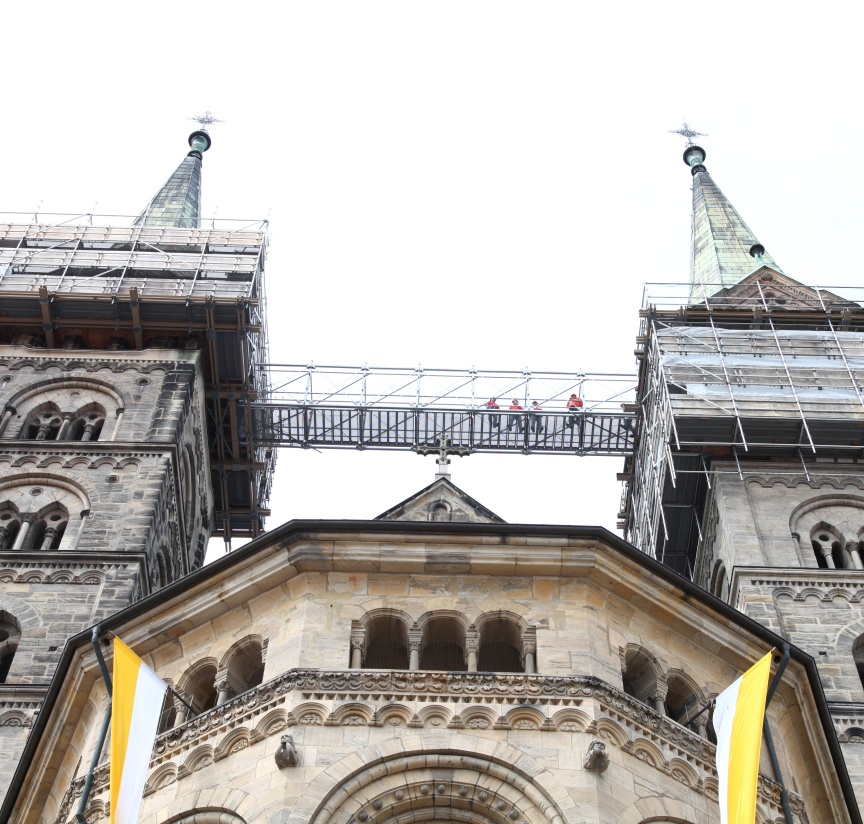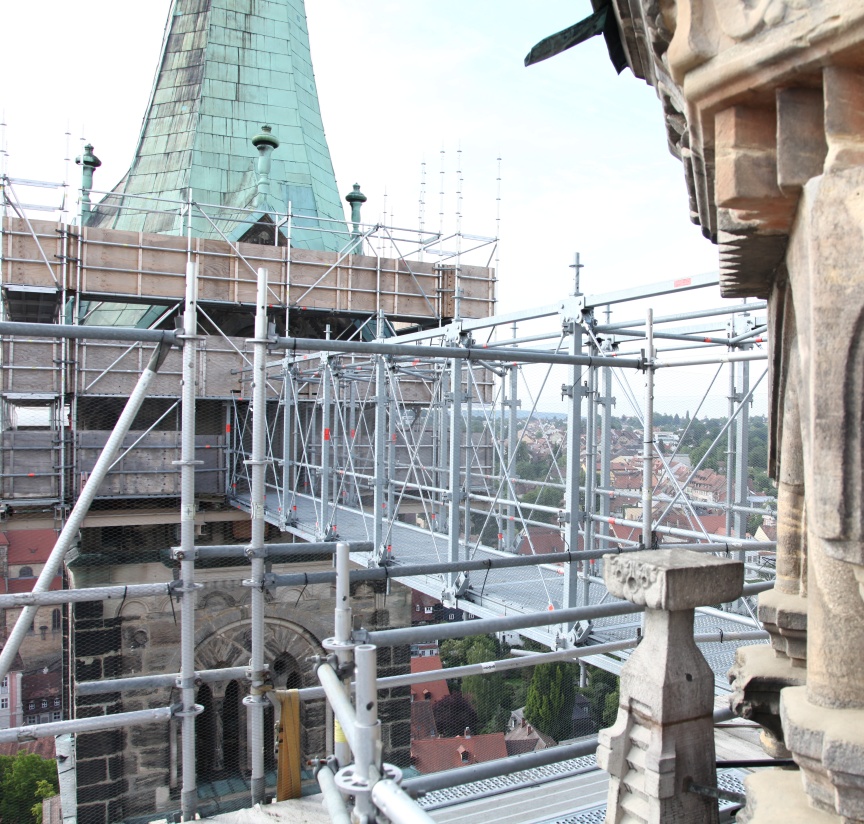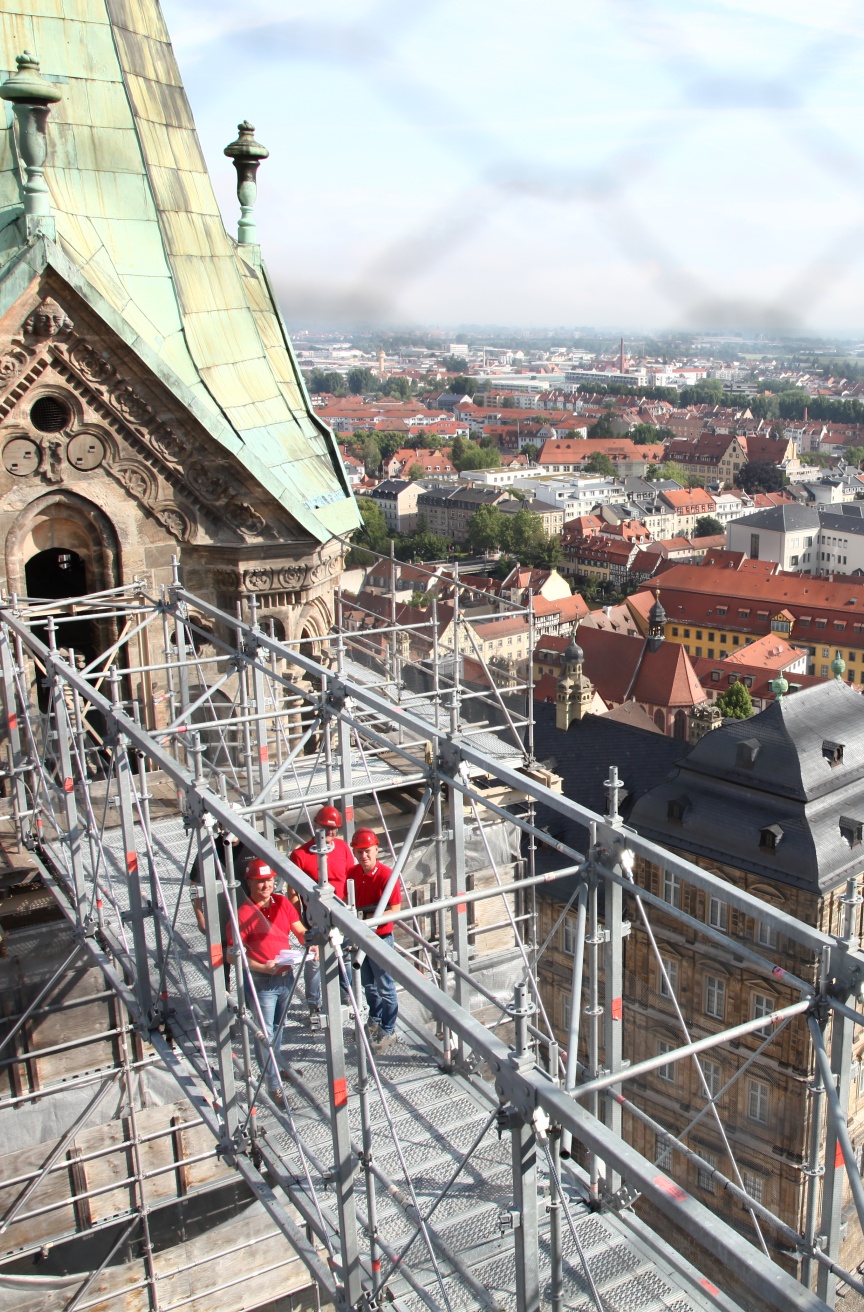 Wenn man in Bamberg auf der „oberen Brücke“ steht und über die Regnitz zum alten Rathaus schaut, fühlt man sich dem Mittelalter ziemlich nahe. Die historische Altstadt ist nämlich einer der größten, weitgehend unversehrt erhaltenen Stadtkerne Deutschlands und wurde 1993 sogar zum UNESCO Weltkulturerbe erhoben. Direkt hinter der Regnitz erhebt sich der Domberg, wo in der ersten Hälfte des 13. Jahrhunderts der heutige Dom und das wohl bekannteste Wahrzeichen Bambergs, der steinerne Bamberger Reiter, errichtet wurden. Wann immer hier gebaut wird, ist die Firma Karl mit ihrem Angebot an Gerüstbau, Gerüstverleih und Schalungsbau nicht weit. Mit ihrem Fokus auf Denkmalschutz, den Spezialgerüstbau und Sonderkonstruktionen ist das Familienunternehmen in der Region gut platziert und mit den Layher Gerüstsystemen für alle anstehenden Aufgaben bestens aufgestellt.