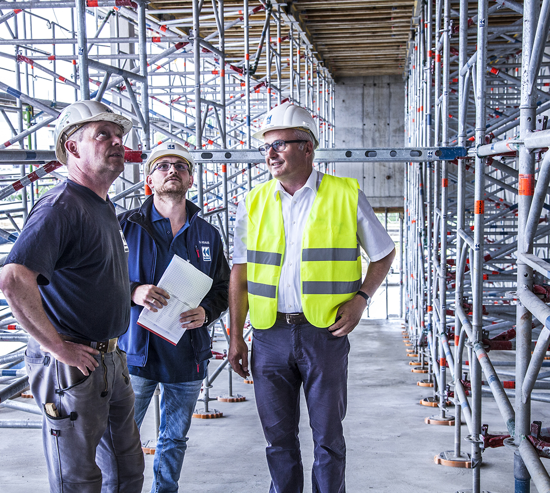 Layher stands for solutions to make things much easier in routine construction site work – by short assembly and dismantling times, extreme flexibility and a high degree of working safety. Besides that, we support you with extensive technical literature and expert advice too. Even directly at your site.