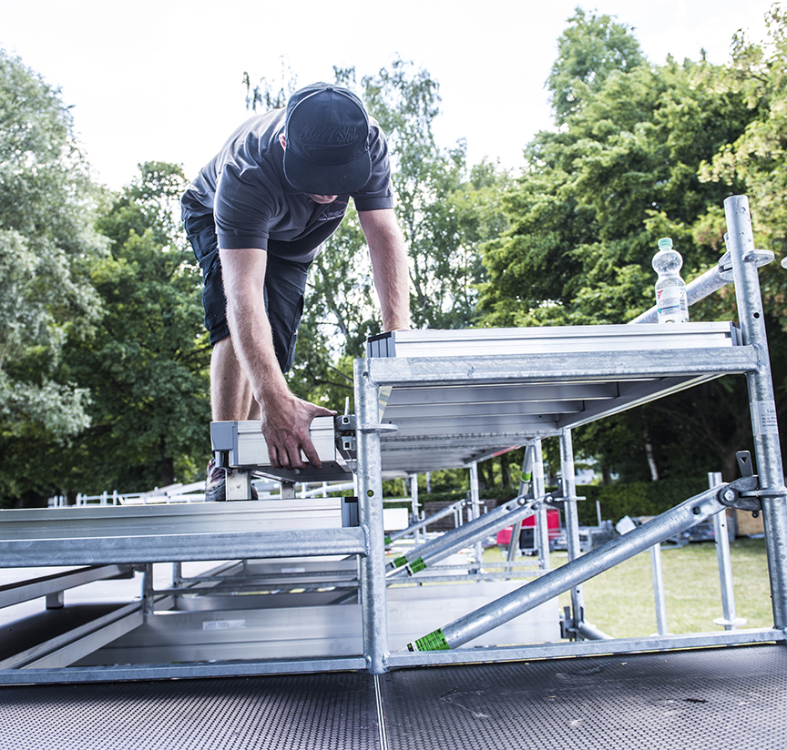 For a perfect performance, Layher Event Systems top the bill. Our product range covers stages, stands and podiums matched specifically to the requirements of the events industry and meeting the most stringent quality and safety standards. You can rely on that – and on our 30 years of experience in the events field.