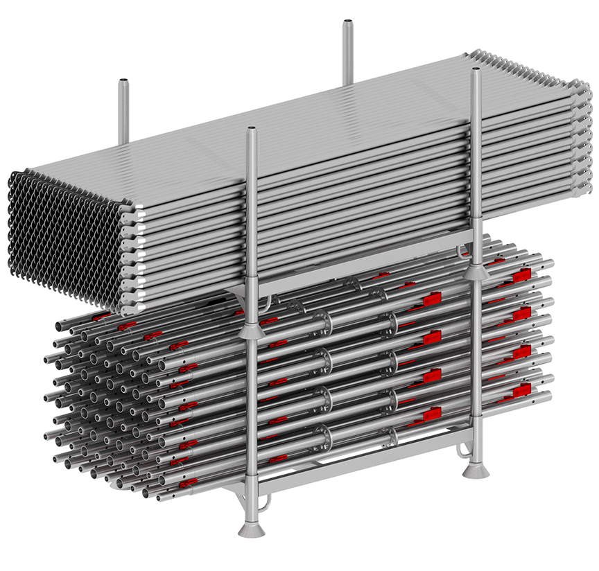 Einfach vielseitig: Kundenwünsche mit Serienteilen realisierenFlexibilität war bei diesem Projekt eine maßgebliche Vorgabe, berichtet Geschäftsführer Markus Holzapfel. „Abgesehen von der runden Form mussten wir verschiedene Bauwerksteile ins Gerüst integrieren, zum Beispiel Rohrleitungen oder die Außentreppe des Sauerstofftanks. Das AGS punktet hier in zweierlei Hinsicht. Zum einen können wir durch den modularen Aufbau die notwendigen Geometrieanpassungen einfach vornehmen. Zum anderen lässt sich das AGS mit dem AllroundGerüst-Baukasten kombinieren, also auch mit den Ausbau- und Ergänzungsbauteilen. Diese bieten praktische Lösungen für eine Vielzahl an Anforderungen, etwa die Podesttreppe für den geforderten Baustellenzugang. Damit ist während der Beschichtungsarbeiten ein trittsicherer sowie schneller Auf- und Abstieg sichergestellt“, weiß Holzapfel. Eine weitere praktische Lösung war der sogenannte „Eckboden für Rundrüstungen“. „Mit dem Ausbauteil können meine Gerüstbauer Rundrüstungen problemlos vollflächig ausdecken und unserem Arbeitgeber dadurch ein sicheres Arbeiten auf dem Gerüst ermöglichen.“ Die Kombination mit dem Integrierten Layher System hat für den erfahrenen Gerüstbauunternehmer aber noch einen weiteren entscheidenden Vorteil: „Beim AGS ist auch mein Bestand an Layher Gerüstböden weiterhin nutzbar. Das verschafft mir aus unternehmerischer Sicht Investitionssicherheit und erhöht den Materialumschlag für meinen Materialbestand.“