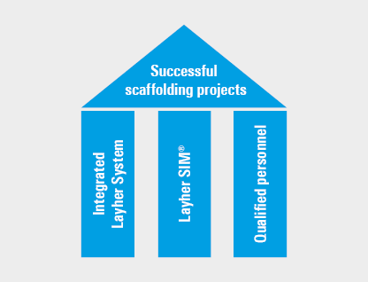 The efficient construction of scaffolding and shoring structures makes a vital contribution to the overall success of building projects. The right products, good preliminary planning with Layher SIM and trained, qualified specialist personnel are the three fundamental prerequisites for successful scaffolding projects.